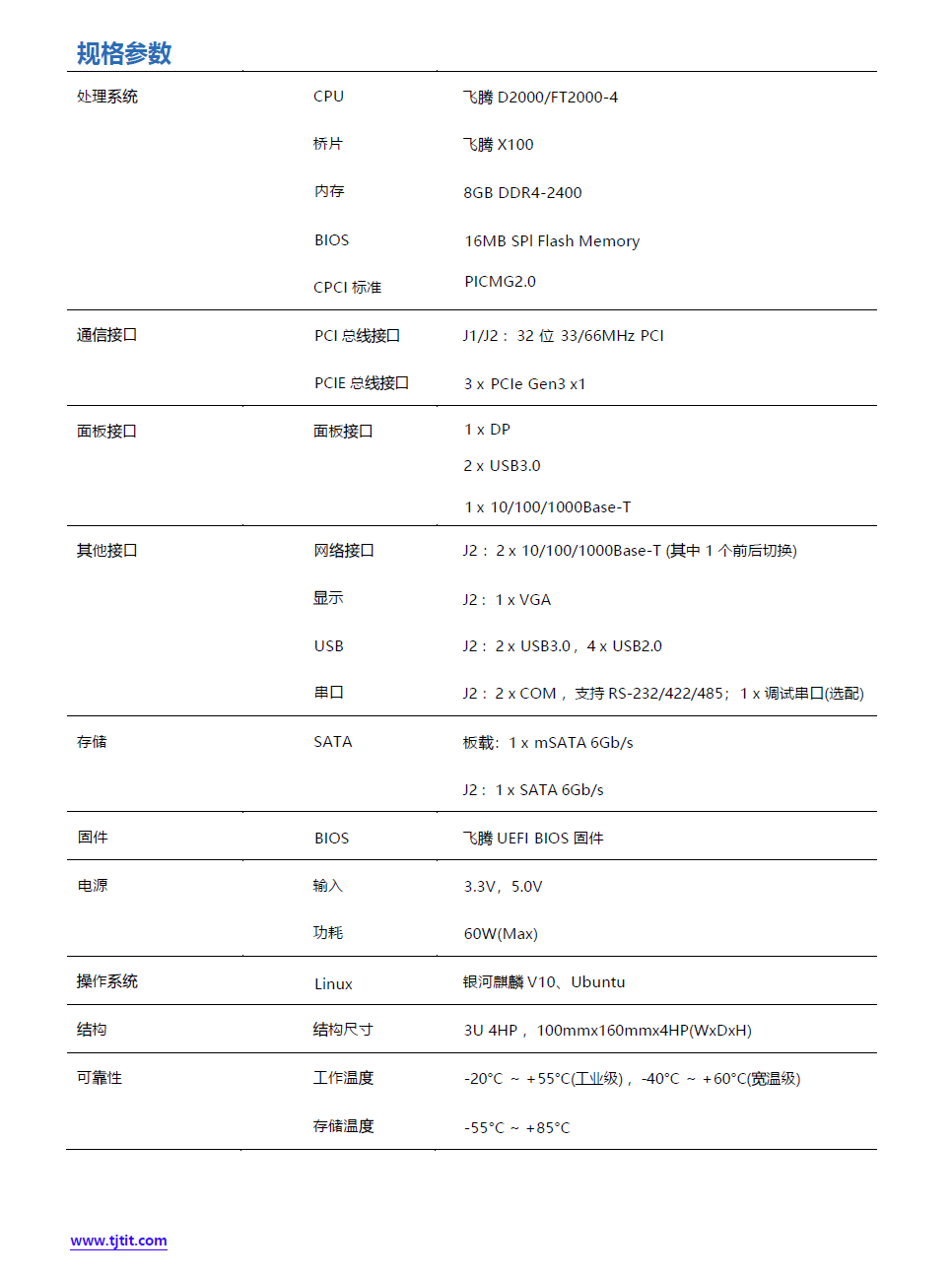 l   板载国产飞腾 FT2000-4 或 D2000-8 处理器